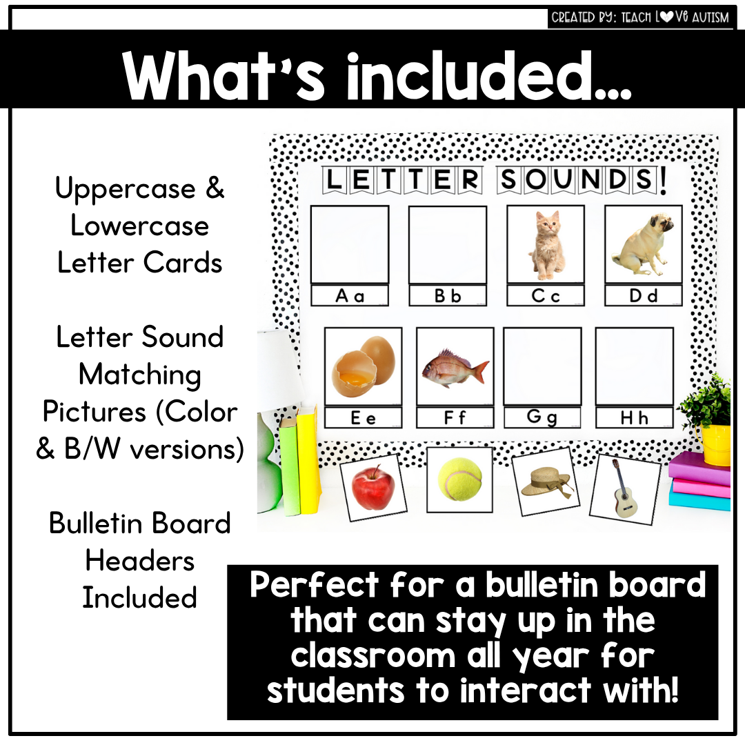 The Interactive Alphabet Bulletin Board is perfect for Preschool, Pre-K, Kindergarten, and early elementary students, including those in special education or emergent literacy programs. This hands-on resource builds letter recognition, beginning sound awareness, and phonics skills through interactive matching activities using real-life photographs that bring meaning and connection to each letter.