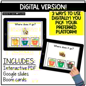 Want to be sure your students understand sorting and recycling items? These printable and digital task cards ask students to identify the item on it and then select the proper container to sort it into and recycle it. Use these to accompany your science or Earth Day lessons! They are perfect for hands-on learning! These can be best used as morning work, science center work, early finisher, independent work station materials, and more!